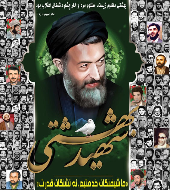 شهادت مظلومانه آیت الله دکتر بهشتی و هفتاد و دو تن از همراهان ایشان را در اثر انفجار بمب توسط منافقین کوردل در دفتر مرکزی حزب جمهوری اسلامی تسلیت عرض می کنیم.