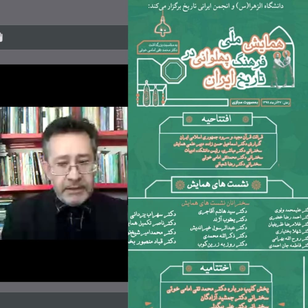 در مورخه ۲۷آذرماه ۱۳۹۹ به مناسب بزرگداشت محمدتقی امامی خوئی همایش ملی فرهنگ پهلوانی در تاریخ ایران با حضور اساتید برجسته تاریخ که بصورت مجازی در دانشگاه الزهرا برگزار گردید. در این همایش جناب دکتر...