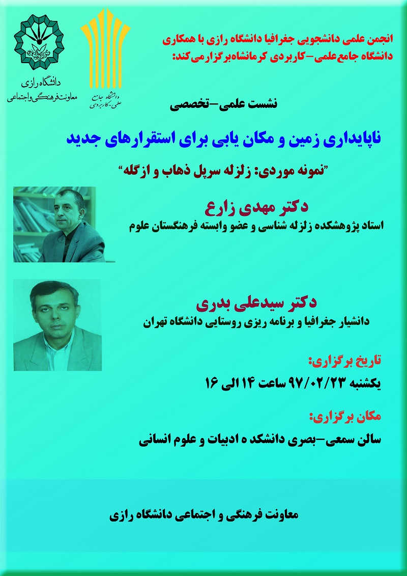 نشست علمی - تخصصی با عنوان ناپایداری زمین و مکان یابی برای استقرار های جدید - دانشکده ادبیات