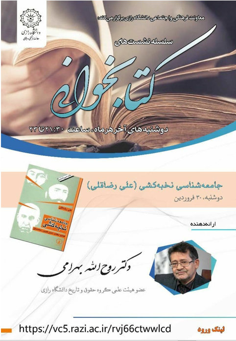 اولین نشست با عنوان «جامعه‌شناسی نخبه‌کشی (علی رضاقلی)» با ارائۀ دکتر روح‌اله بهرامی عضو هیئت علمی گروه حقوق و تاریخ دانشگاه رازی