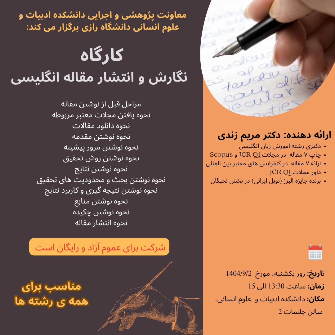 برگزاری کارگاه نگارش و انتشار مقاله انگلیسی